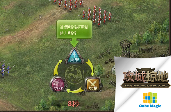 大家可以根據圖片中的克制效果選擇正確的戰術。值得注意的是,點擊中間武將頭像就會釋放該武將的戰法,戰法能夠克制一切戰術!