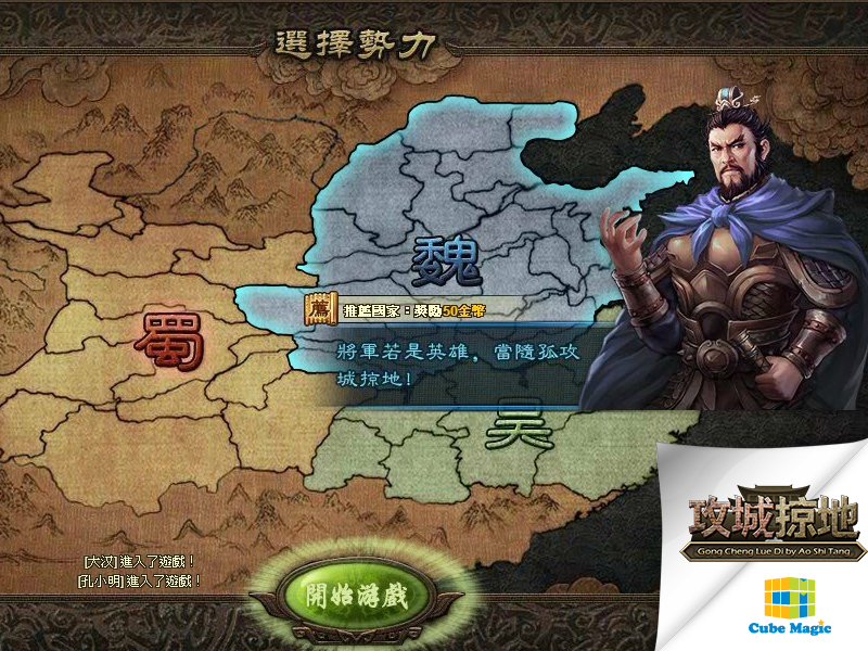 攻城掠地的玩家首先將碰到一個選國家的選項,如果和朋友一起玩的可以和朋友選擇同一個國家,如果是一個人玩攻城的話可以選擇推薦的國家,選擇推薦國家有一個好處——贈送50金幣。可別小看50金幣,經常有些時候卡經驗升級的時候多有一些金幣攻打「經驗NPC」將是突破級別的最佳選擇。