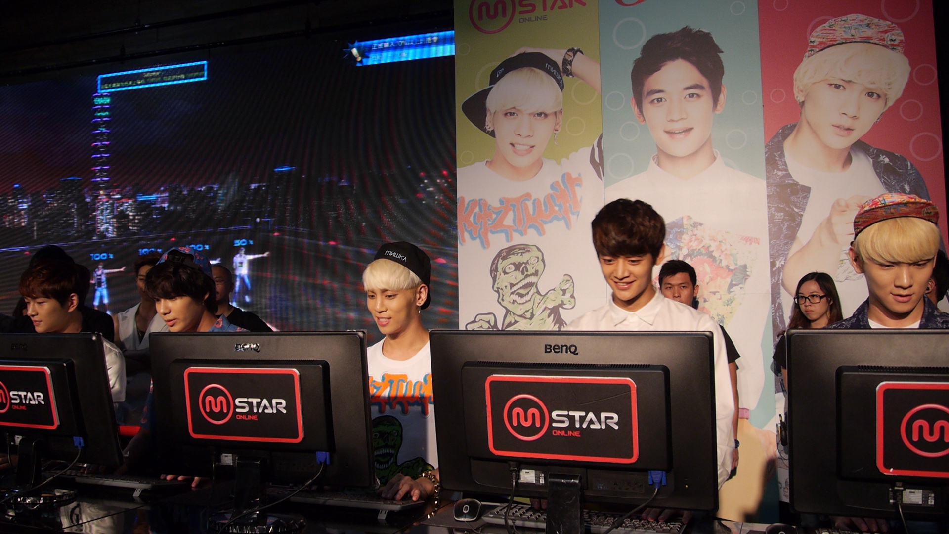 Mstar》、五人一起比賽「Dream Girl」,以下為巴哈姆特 GNN 拍攝 SHINee 現場遊玩的情況: