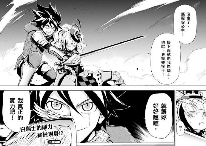 然而傳說仍持續實現,正當「粉紅騎士」打算獨自扛起這一切但卻慘遭強大的魔獸攻擊受傷時,看起來超不可靠的「白騎士」卻突然出現拯救了她。究竟是「白騎士」迪歐在隱藏自己的驚人實力?還是說……下一秒立刻會被打到噴血呢?而兩位騎士真的可以一起合作完成度過這個難關嗎?就讓我們繼續看下去吧。