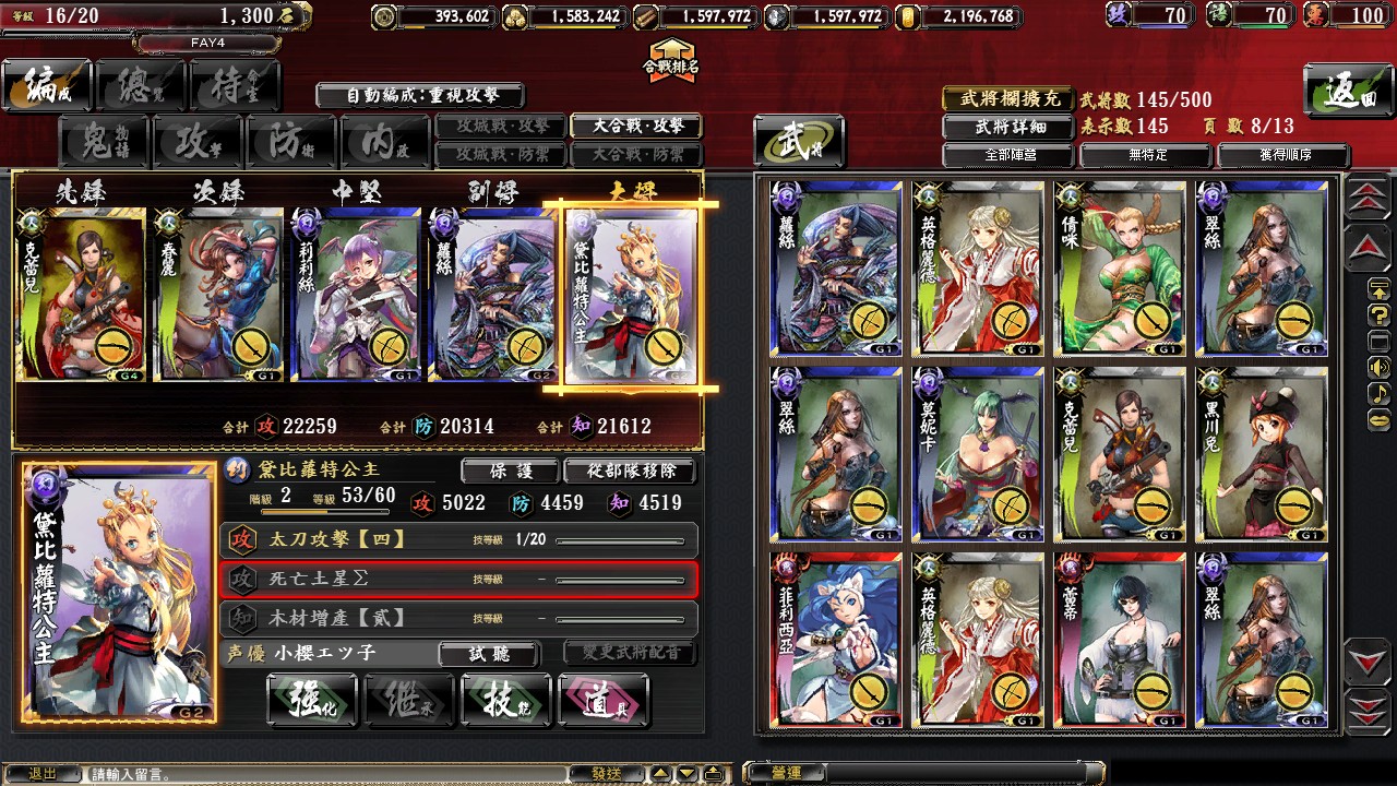 玩家首先分別設定 5 人一組的攻擊部隊與防禦部隊,在大合戰開啟時進入到遊戲介面後,還可以依據城下町的建設高低而獲得不同數量兵力來助陣。進入戰鬥地圖後可以看見許多據點,玩家只要移動到據點上並打敗防守該據點的部隊,就可佔領據點。大合戰結束後將視雙方佔領據點多寡來決定勝負。「大合戰」獲勝方將可獲得較多青魂作為獎勵喔!