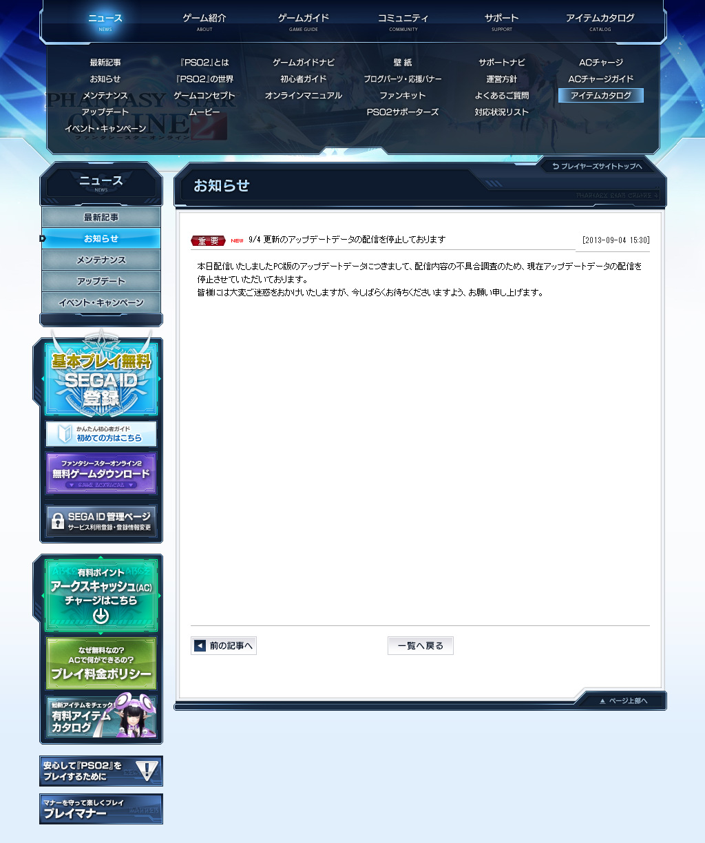 PC 版 9 月 4 日更新檔緊急下架公告
