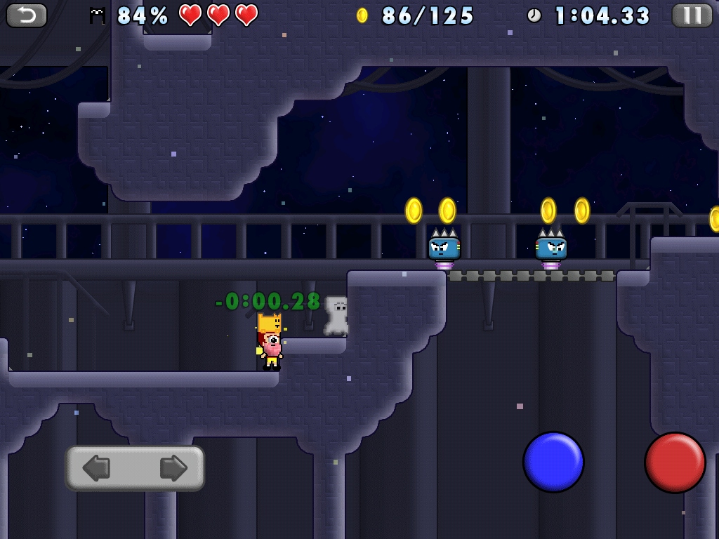 Mikey Hooks》的過關條件只有一種,那就是到達終點!不過遊戲還準備了三種次要目標可以達成。想要追求快節奏的玩家可以嘗試挑戰三星過關,如此的話可能就得在時限內過關。初期的話,或許會覺得三星只是小兒科而已,不過到了後期,就不能有任何失誤囉。