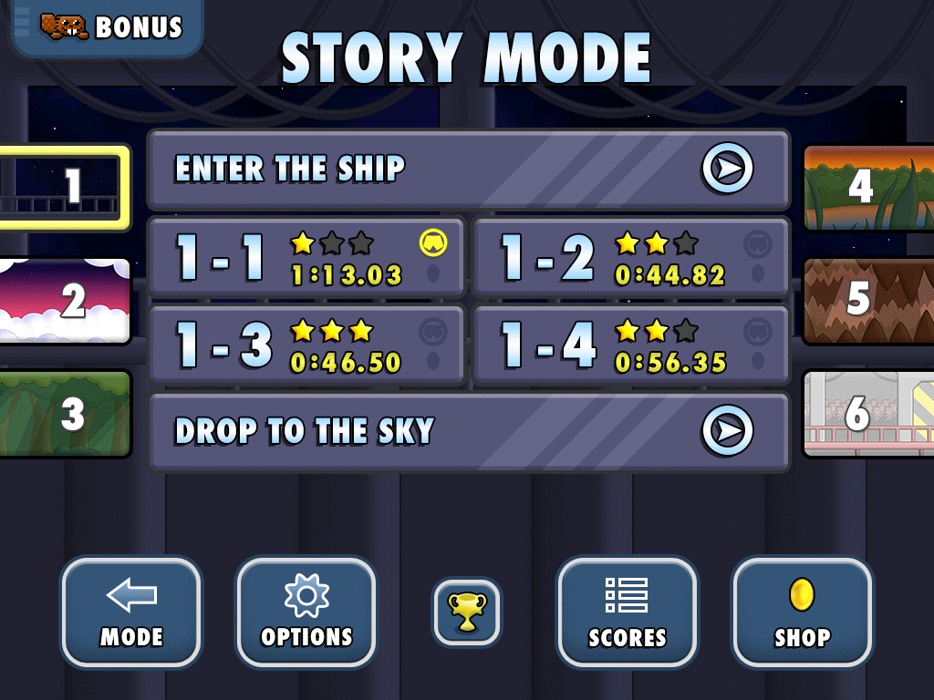 每次過關都會有那關的積分顯示出來,如果想要解開新關卡的話,那麼就必須達成該關卡的總積分條件。例如要 5 萬分才能解開新關卡的話,前面幾關的總分加起來就要有 5 萬分,雖然聽起來很可怕,不過實際上要達成並不會很困難。