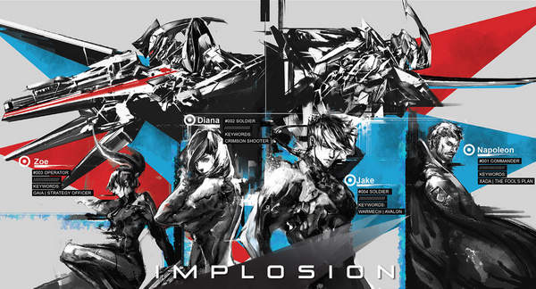 目前官方尚未釋出有關《Implosion》的相關資訊,但玩家可以從以上的圖片中,一窺遊戲中的各個主角形象,以及背後隱約浮現的 Boss 怪物身影。