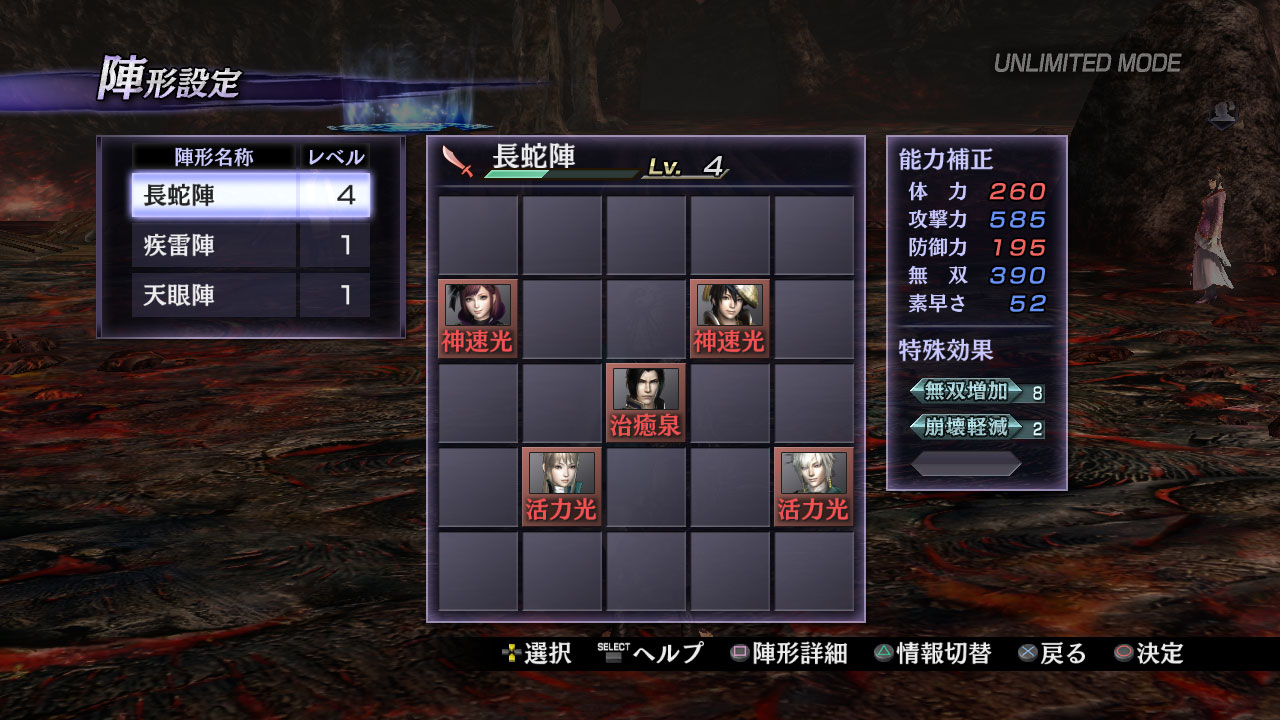 根據陣形的効果,可使小隊的攻擊力或者防禦力上升,還可發動具有特殊能力的陣形技。