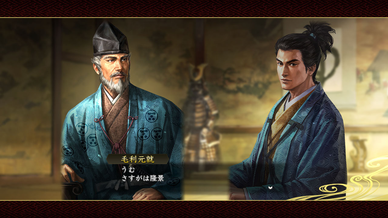 西國之雄的毛利家,毛利元就與孩子們有著很強的羈絆。孩子中特別聰明的小早川隆景,面對父親・元就展現出敏銳洞察力的場面