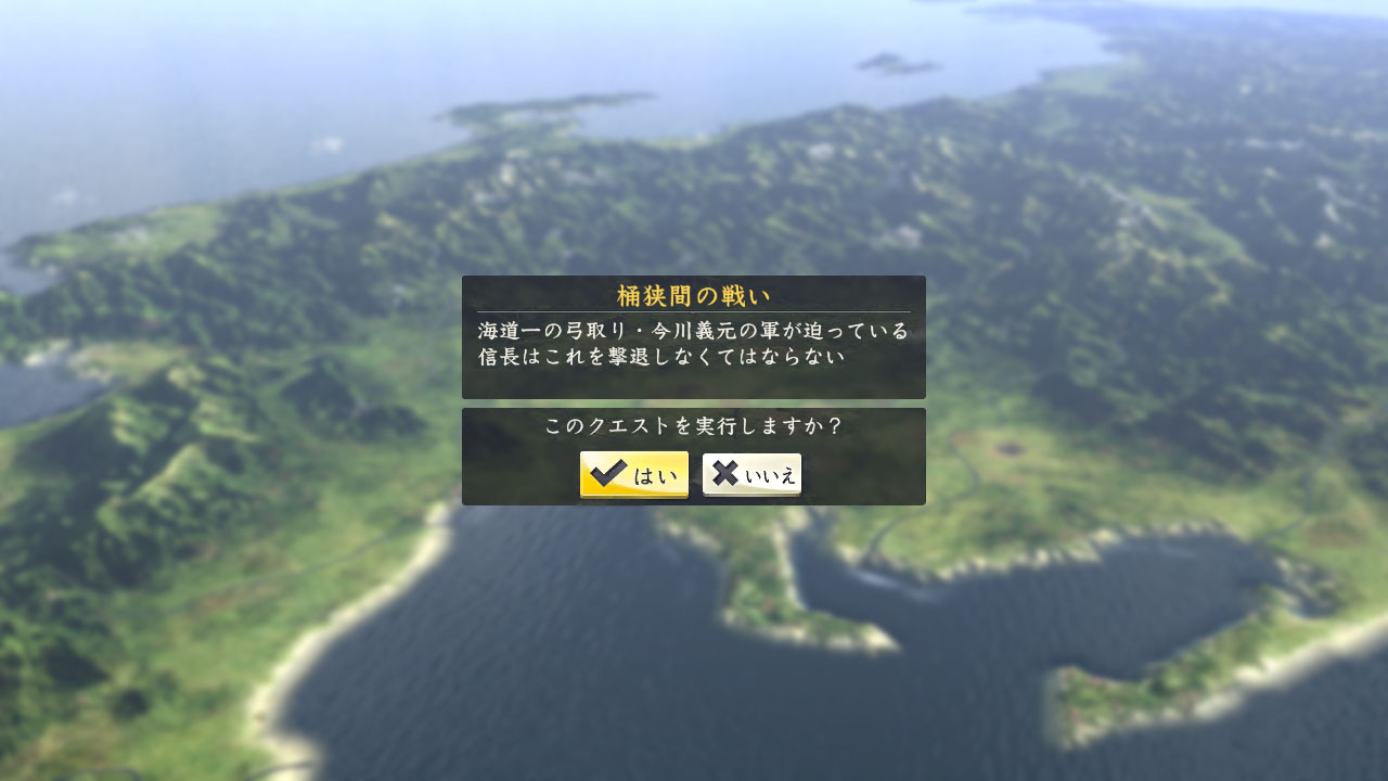 發生任務的時候,要不要實行任務的選擇畫面。在此會根據史實,發生織田信長打敗今川義元的「桶狹間之戰」