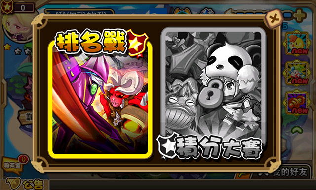 新版本中的取消了原有的奪寶競技場,取而代之的是獎勵更加豐富的排名戰模式。玩家只要進入排名戰介面,就可看到自己當前排名,以及排名相當的對手。每次都可以挑戰比自己排名高9位的對手,每天有7次挑戰的機會。如果PK得不過癮,玩家還可以利用M幣取得額外對戰次數喔!