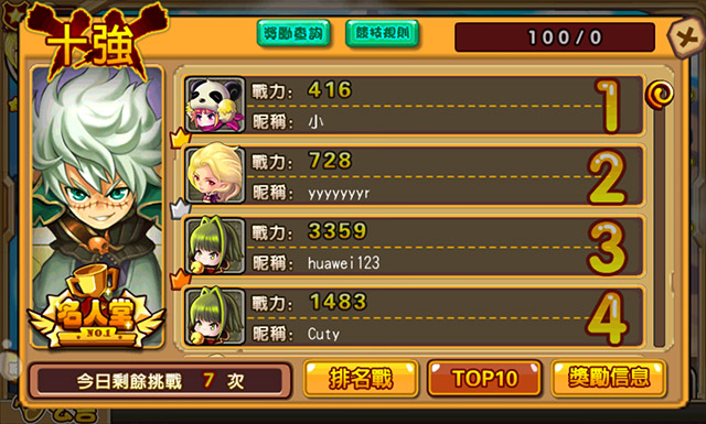排名戰會在每天20:30結算,每天排名第一的玩家最高可能獲得隨機金色裝備一件,其餘玩家也可以獲得大量的星羅牌和強化石獎勵。另外,每天前五名的玩家還可以進入名人堂,展示自己的裝備和寵物配置,供其他玩家參考和膜拜。