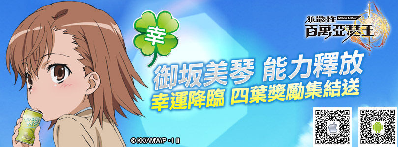 移動怪獸宣布旗下代理的卡牌對戰遊戲《百萬亞瑟王》今(12)日進行改版,將與作家 鎌池和馬筆下作品《科學超電磁砲》合作,在遊戲內推出「御坂美琴」的角色卡牌。