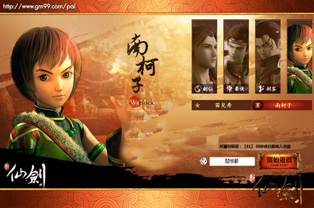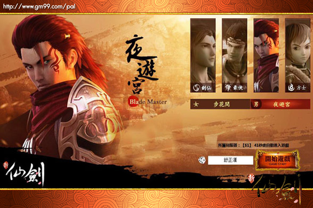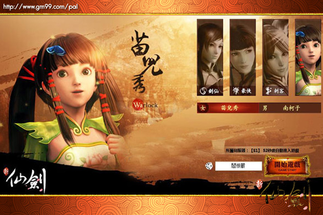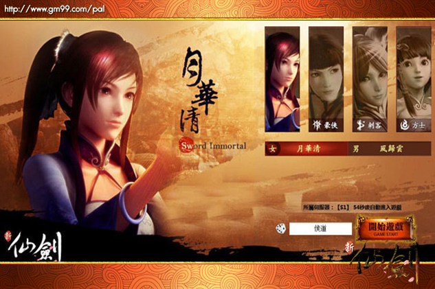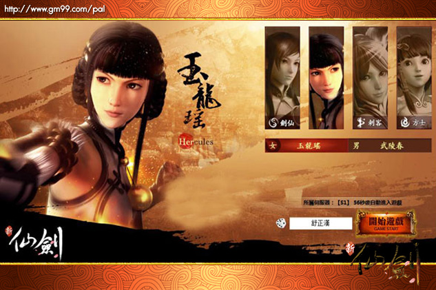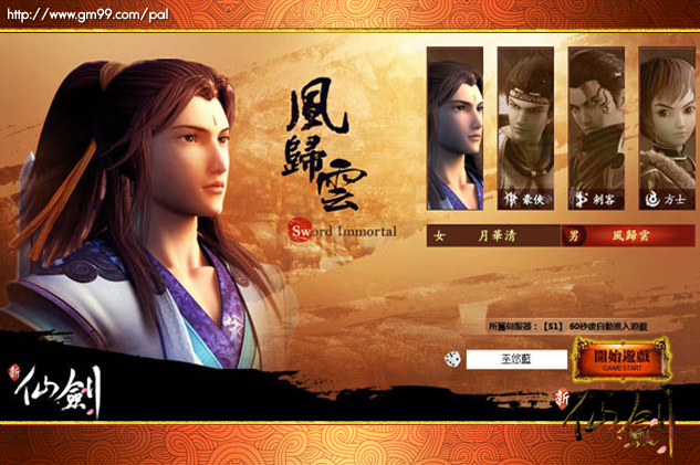 新仙劍》創角介面,選擇性別及想要的職業。遊戲中,設計了劍仙、豪俠、刺客、方士等四種職業,供玩家選擇。