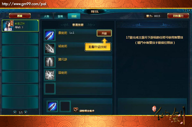 升級技能,未開啟的技能需要達到一定的等級方可學習