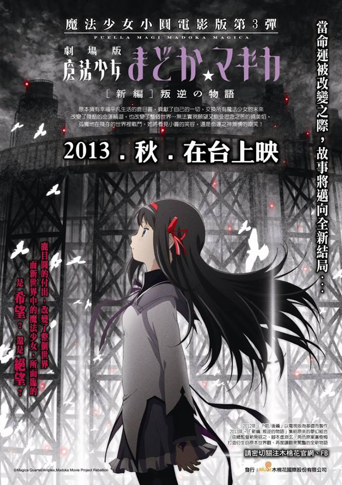 木棉花於今(16)日發表,預計今年 10 月 26 日在日本上映的動畫電影《魔法少女小圓 劇場版新篇 叛逆的物語》,也預定將於今年秋季在台上映。