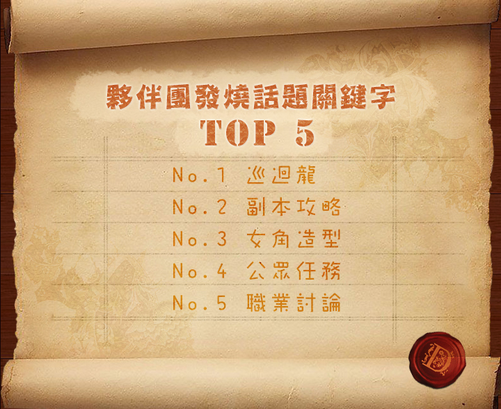 群龍默示錄》的地位果然不可撼動!討論關鍵字出現第二多的就是「副本攻略」,果然玩家們群聚夥伴團最大的好處就是能組隊一起冒險犯難、為夥伴團的茁壯打拼!