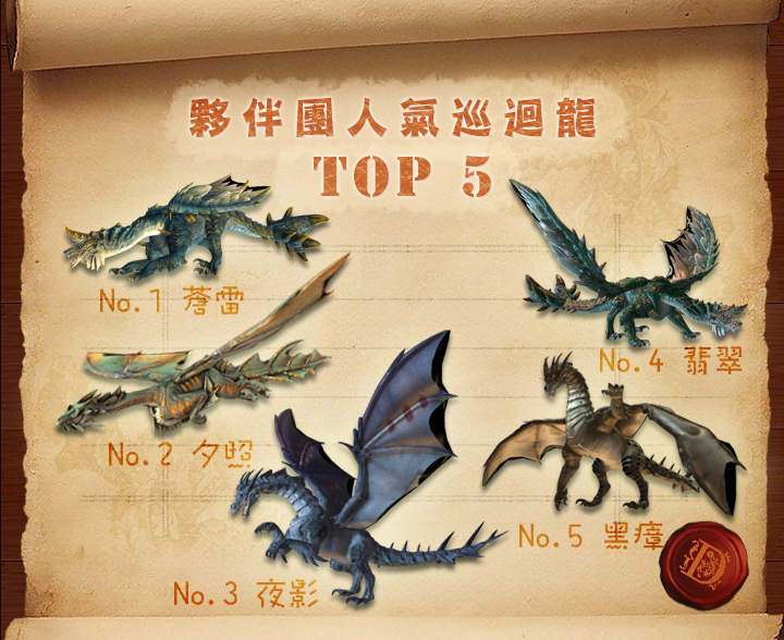 夥伴團最HOT的話題關鍵字當然是巡迴龍啦!平均每天都有超過兩千句對話討論巡迴龍的抓取或養成,巡迴龍在《