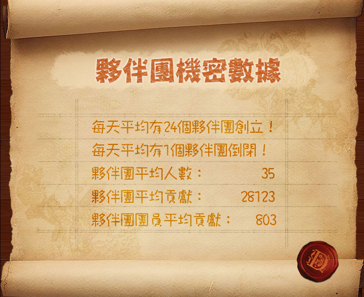 看完精采的統計圖表後,相信玩家對夥伴團也有更深入的認識,未來的領地戰也需要有夥伴團才能參加聯盟,奪取領地。還在流浪的玩家們,趕快找到心目中理想的夥伴團加入吧!