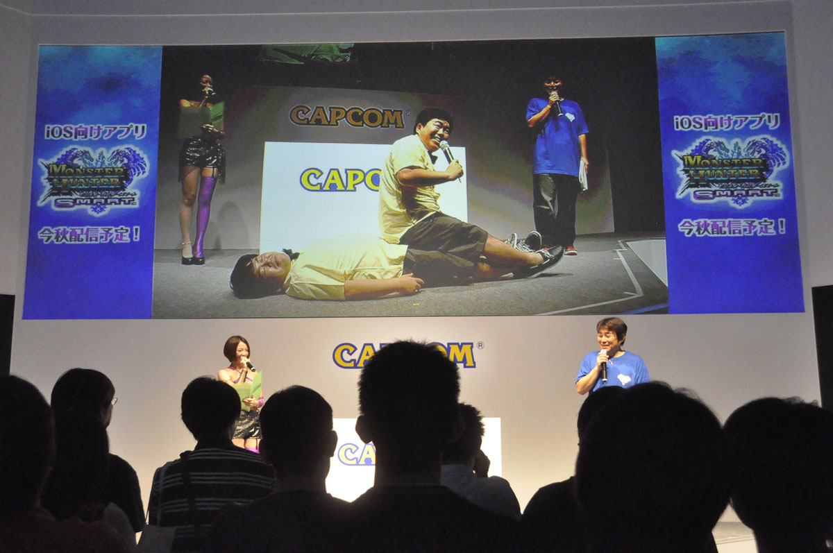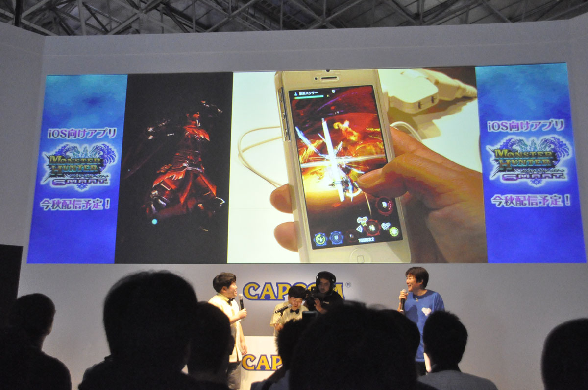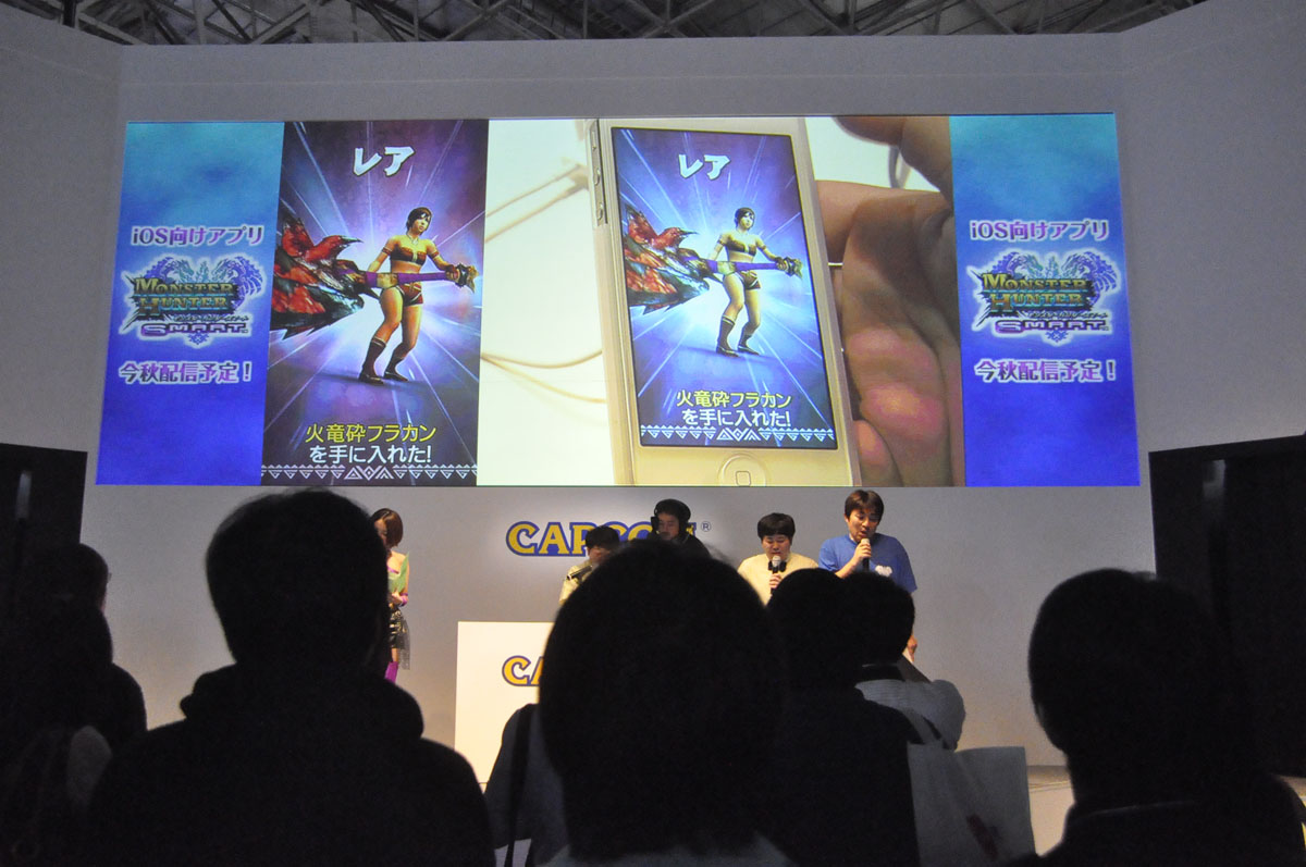 在活動的後半也介紹了 iOS 專用遊戲「魔物獵人商店:艾路的市場(モンハン商店 アイルーでバザール)」。在東京電玩展的會場也能夠拿到稀有度 SS 的「奇猿貓(ケチャネコ)」與「怪鯊貓(ザボアネコ)」