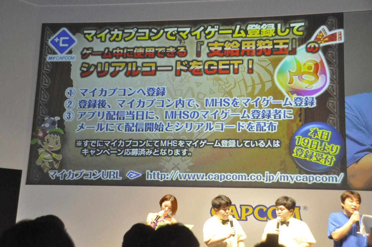 於 CAPCOM 的網路優待服務「MY CAPCOM(マイカプコン)」進行遊戲登錄後,可獲得4個「配給用狩獵球(支給用狩玉)」作為禮物,於9月19日開始受理。