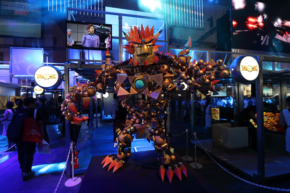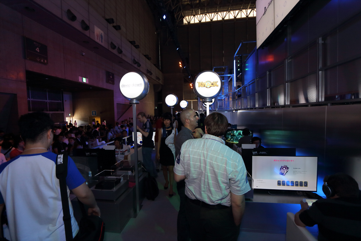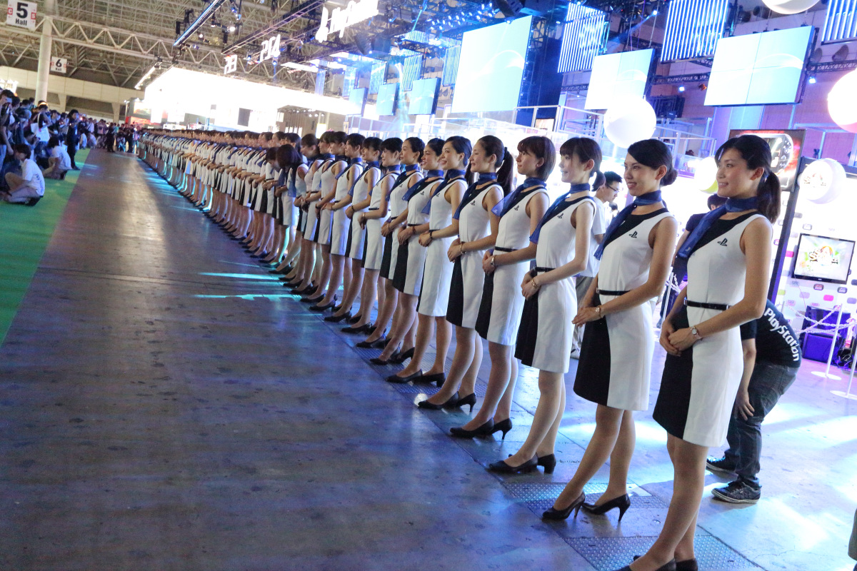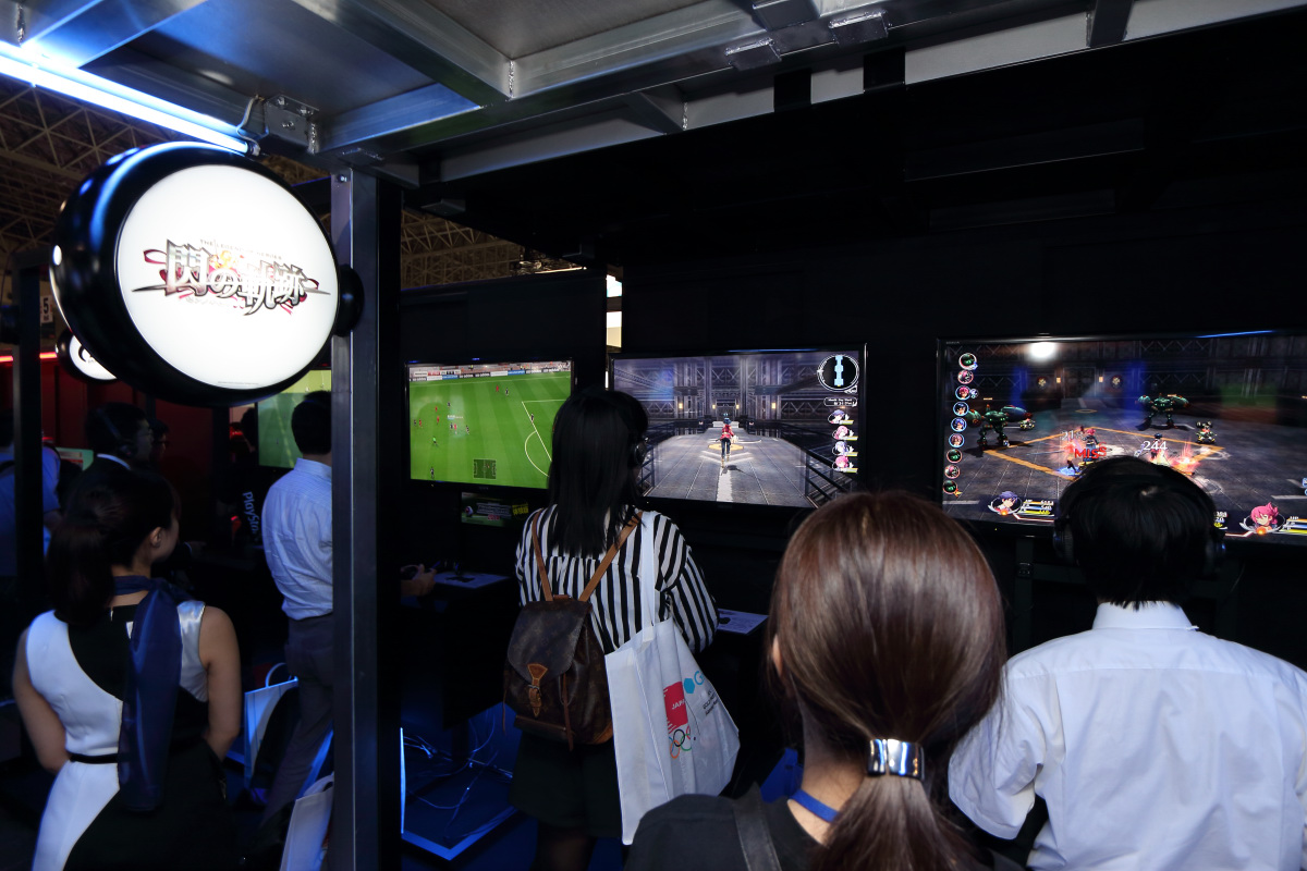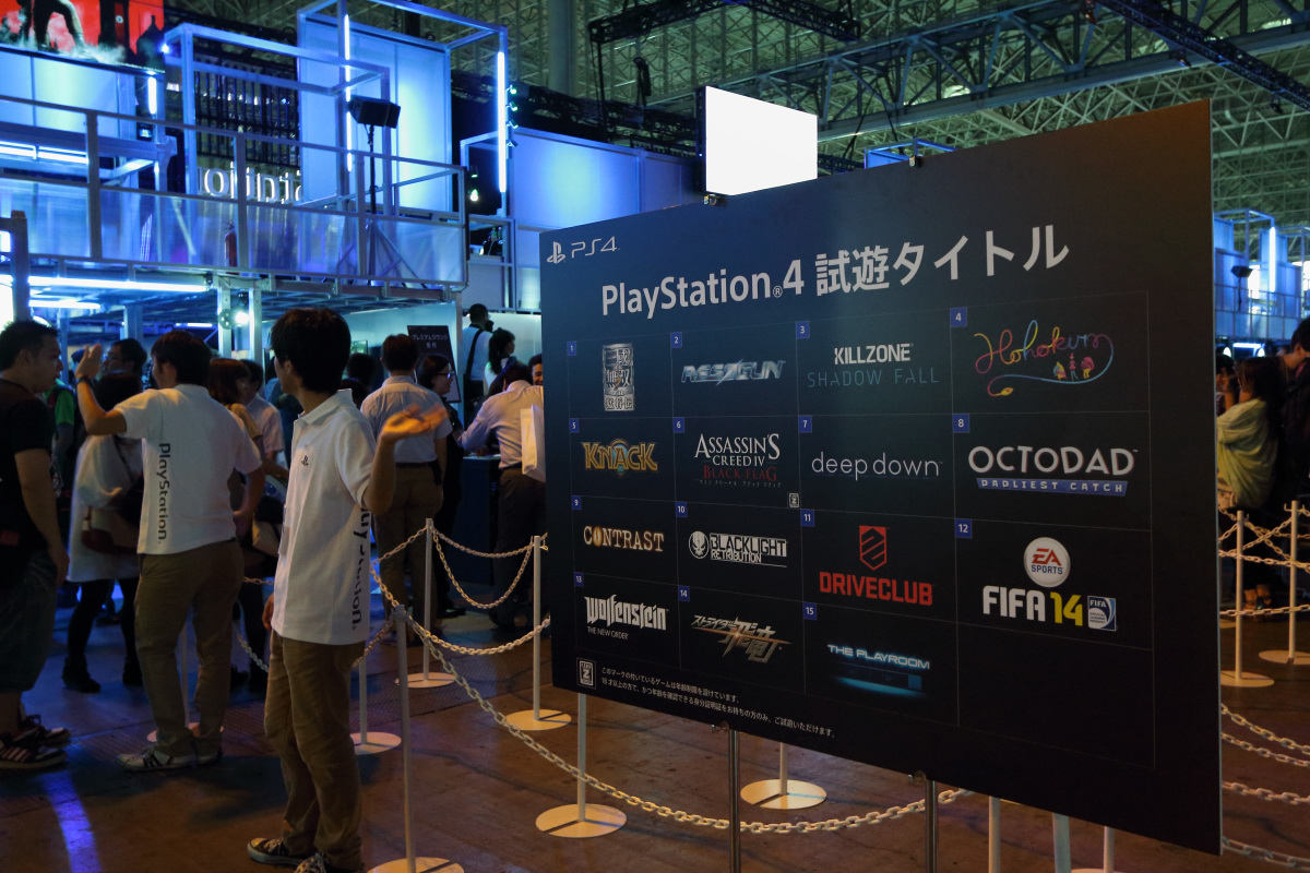 已經數年蟬聯 TGS 最大規模展出廠商的 SCEJA,這次又再度以橫跨幕張國際展場 4 到 5 廳的大型展出攤位,一口氣展出大量 PlayStation 遊戲軟硬體新產品。這次沒有採用以往的雙層設計,而是直接在平面空間上進行產出,分為 PS3、PS4、PS Vita 與 PS Vita TV 共 4 個主題展區。