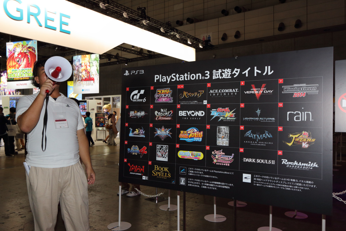 在這次東京電玩展中,索尼電腦娛樂日本亞洲(SCEJA)以全場最大規模的攤位,盛大展出包括首度在日本公開亮相的次世代新家用主機「PlayStation 4(PS4)」、掌上型主機新機種「PlayStation Vita 2000 型(PS Vita PCH-2000)」以及遊戲機上盒「PlayStation Vita TV(PS Vita TV)」在內、橫跨 4 個平台超過 60 款遊戲的豐富軟硬體陣容。