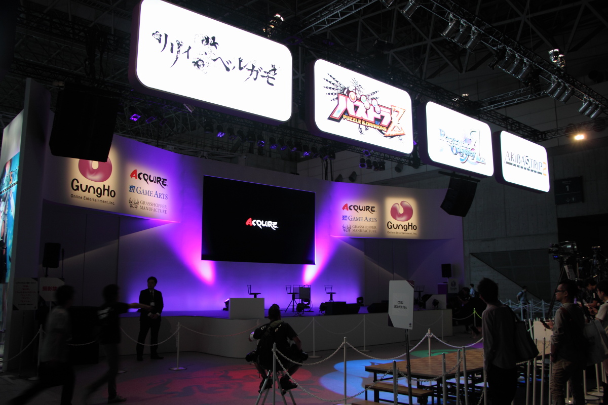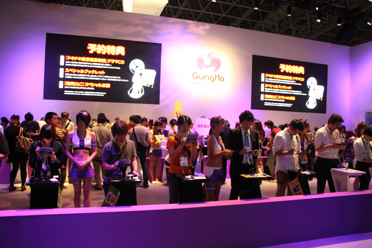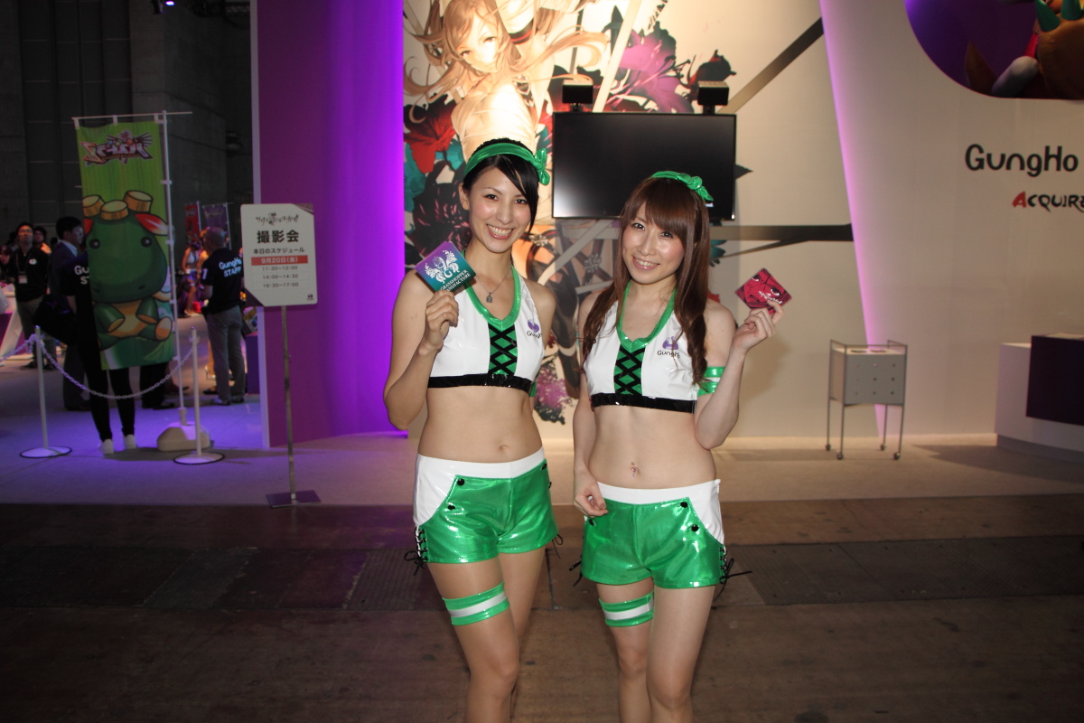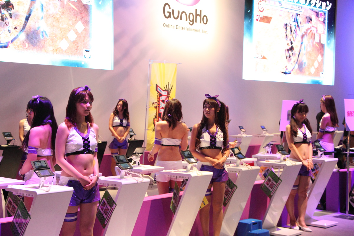 近年因《龍族拼圖》於日本獲得莫大成功的 GungHo,本次在東京電玩展中展出規模和 ShowGirl 聘請的數量也是數一數二的。GungHo 單主打即將於 N3DS 推出的單機版《龍族拼圖》-《龍族拼圖 Z(パズドラZ)》,不僅擺出大量的試玩機台,每個機台的旁邊也都搭配一位 ShowGirl 來陪玩家試玩,陣仗看起來相當的壯觀。另外,將於 PS Vita 推出的高速狩獵多人動作遊戲《仙境傳說 奧德賽 ACE》也在此區提供試玩機台。