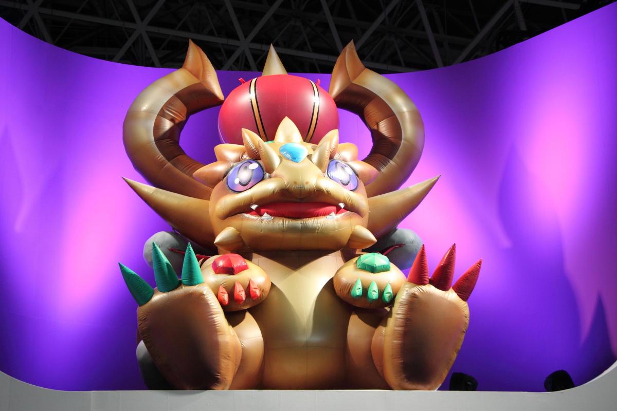 龍族拼圖》吉祥物作鎮中央,左右分別擺出將在 PS4 推出的全新動作遊戲《Lily Bergamo(リリィ・ベルガモ)》以及跨 PS3 / PS Vita 的動作冒險遊戲《