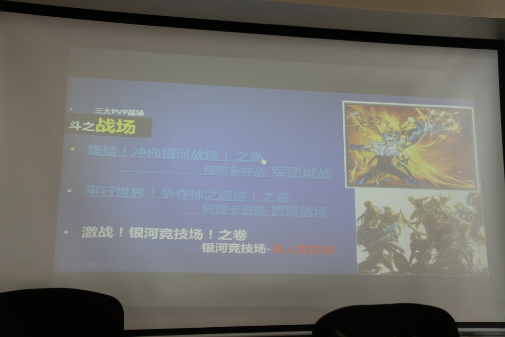而在場景方面也會有相同的狀況,有時候設計出來的可能會與日本方面想像中的不同。另外,在製作場景時還會遇到原著中的場景出現很少,或是分格較小時,研發團隊就會自行發揮想像力,盡力呈現、揣摩出車田正美老師腦中的場景畫面。主策劃同時透露,在研發過程中,也架設了一個專門的服務器,日本方面可以透過這個服務器看到遊戲中的任何即時改動。