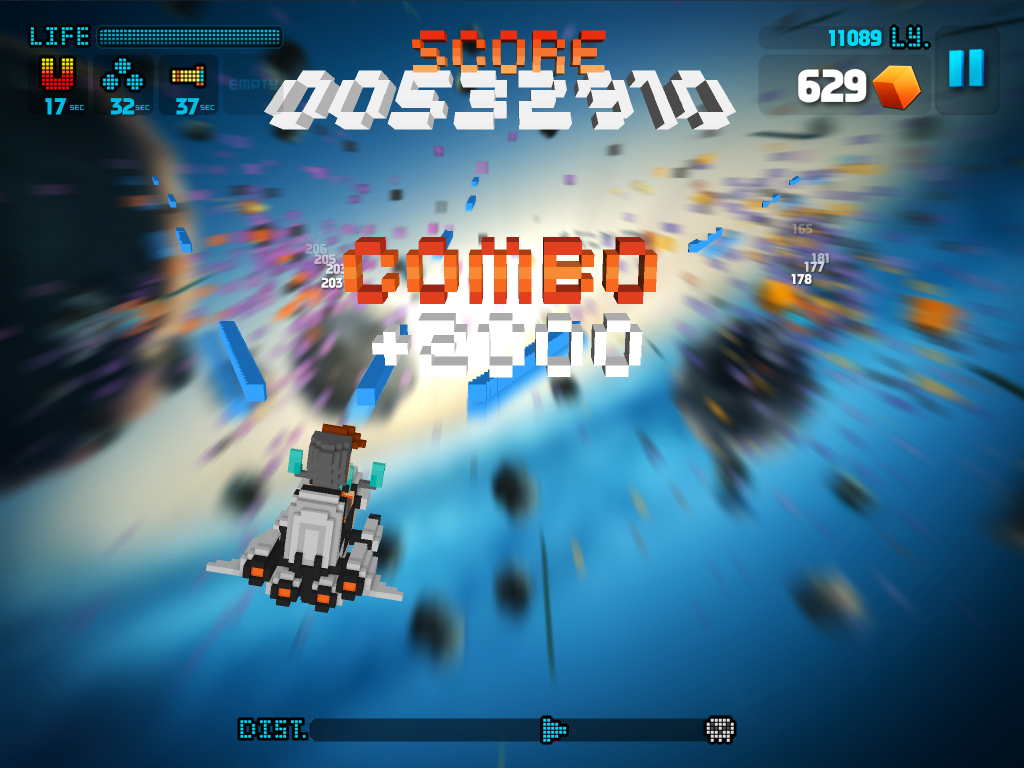 至於操控的部份,遊戲則是捨棄了虛擬搖桿,玩家只需簡單用一隻手指在螢幕上移動或點擊,即可控制太空船的動作,而快速滑動手指即能令太空船快速閃避敵人攻擊。
