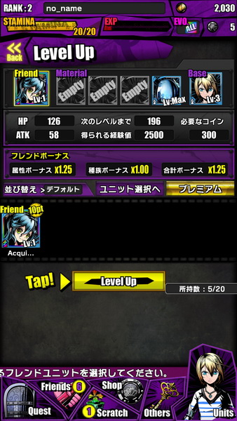 合成的部份,若是玩家將同樣種族、屬性的朋友擺在合成列表,則有機會獲得更高的經驗值進行升級。