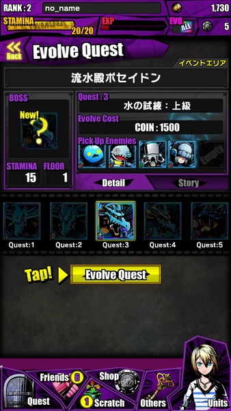 至於進化的部份,也是類似合成系統一般,玩家需要找到符合指定條件的好友寵物,才可以滿足進行的條件。一旦萬事具備,則玩家就可以進入指定的進化挑戰關卡,打敗關卡 Boss 讓寵物完成進化的動作。