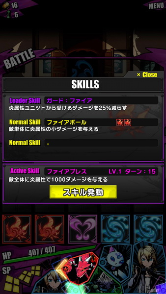 玩家組隊時的卡牌屬性對應了場上的各個方塊顏色,舉例如說,若要發動火屬性攻擊,則勢必得擁有火屬性的卡牌在隊伍中。反之若是沒有對應屬性的卡牌在隊伍中,則無法發動該屬性的攻擊。