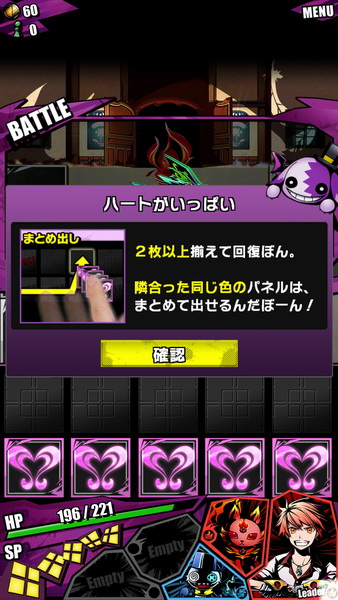 值得注意的是,若是同樣顏色的方塊並列在一起,則玩家可以手指一滑,將所有相同顏色的方塊一次拉到上方的空格中,而不用一格一格的拉動方塊,關於這部份可以算是戰鬥進行中最有趣,也是最爽快的部份。而藉由累積愈多相同的顏色,玩家也可以發動較為強大的全體攻擊。