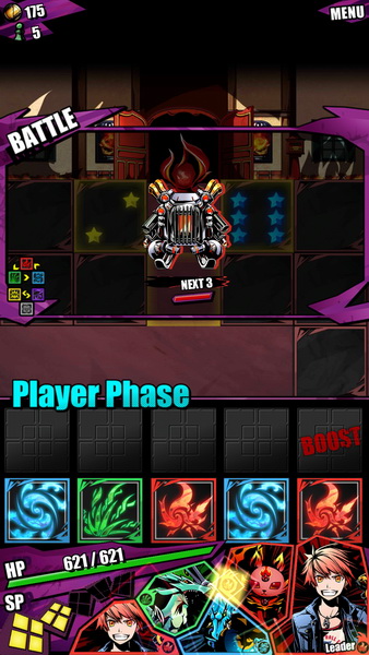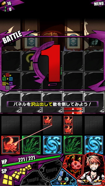 接下來則帶領玩家進入戰鬥系統的部份。本作的戰鬥系統十分簡單、快速,每場戰鬥以 5 秒鐘為一回合,玩家可以在開始前思考如何出牌,但一旦開始挪動方塊,則得在時間內結束動作。