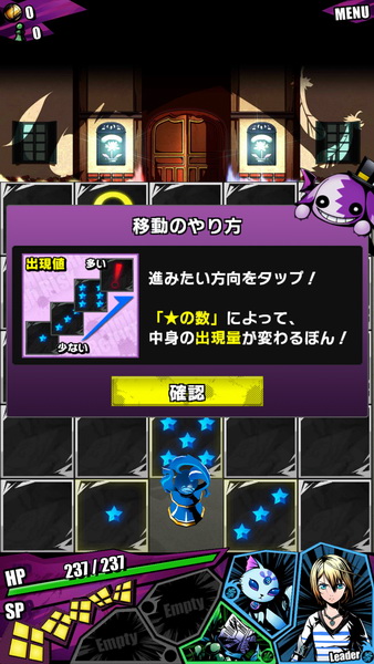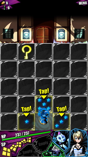 棋子移動時需要消費 1 點 SP,而畫面中共有 25 個格子可供探索。一旦 SP 值消費殆盡,而又沒有取得鑰匙抵達門前的話,每走一步就會開始扣血,關於這點還請玩家多加注意。