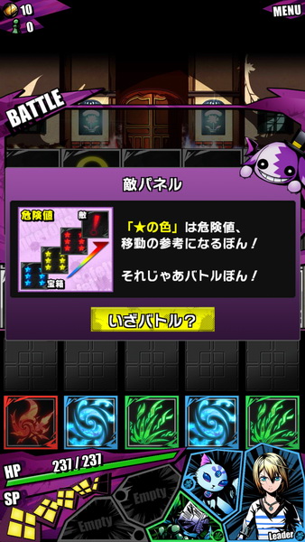 至於危險值的部份,則會依據格子上星星顏色的不同,讓玩家有可能遭遇到敵人或是取得寶物。