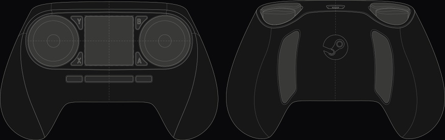 Valve 首度展示了 Steam 控制器的模樣,它具有兩個圓形的觸控板,玩家可透過拇指來操作這兩個觸控板,觸控板使用高解析度的觸控面板作為基底,可以按壓讓整個面板可被當作按鈕使用。Valve 強調,熟悉桌上型電腦的輸入操作的 Steam 玩家將會高興 Steam 控制器能帶來相當於滑鼠的高解析控制,而過去只能用滑鼠與鍵盤控制的遊戲將可以在沙發上遊玩,包括即時戰略、模擬、第一人稱射擊等遊戲都能獲得控制。