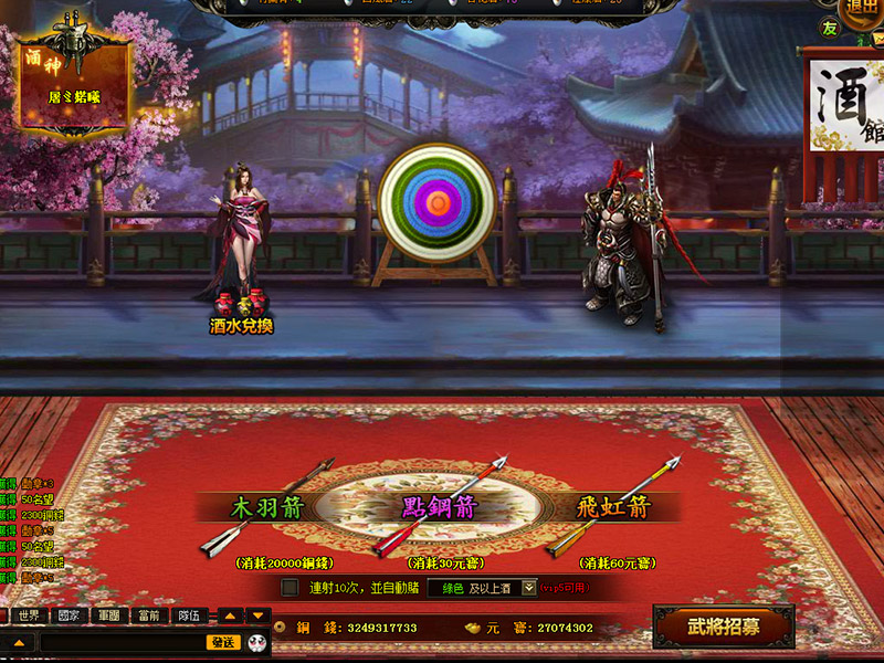 酒館系統是玩家招募武將的重要途徑,玩家可以透過射箭玩法來獲得酒,獲得一定數量的酒即可兌換武將。