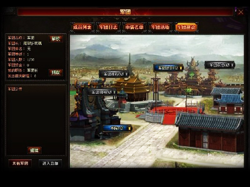 當玩家角色升到 16 級時,會開啟軍團系統。軍團是由多數玩家組成的一個團體,玩家可以在這裡聊天、打坐、學習技能等,能夠交朋友、帶來戰力成長。