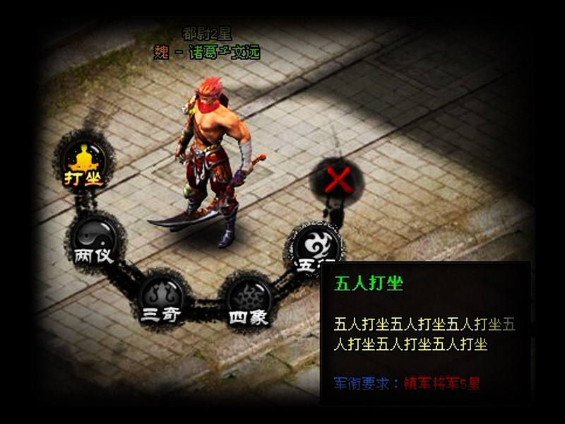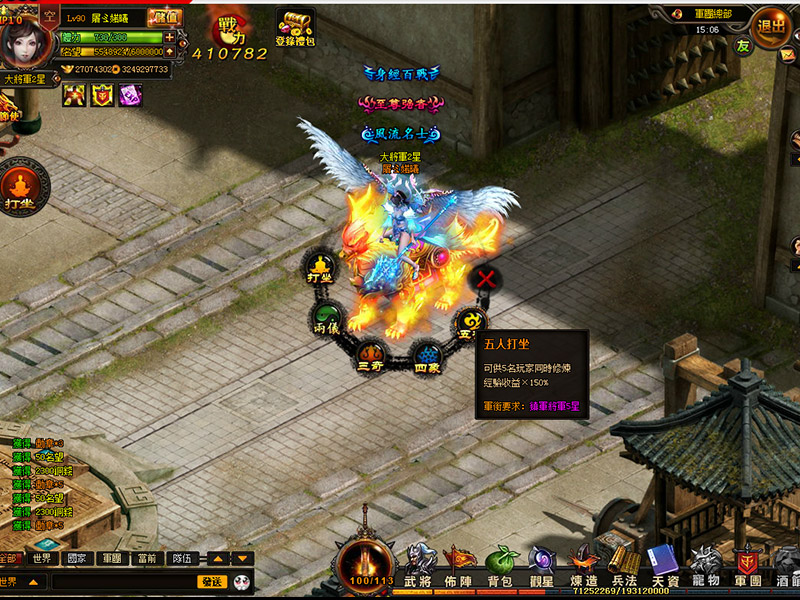 軍團打坐:加入軍團後,玩家可以在軍團中打坐,打坐可以獲得大量經驗。根據玩家名望等級的高低,更可以選擇 1-5 人打坐哦。