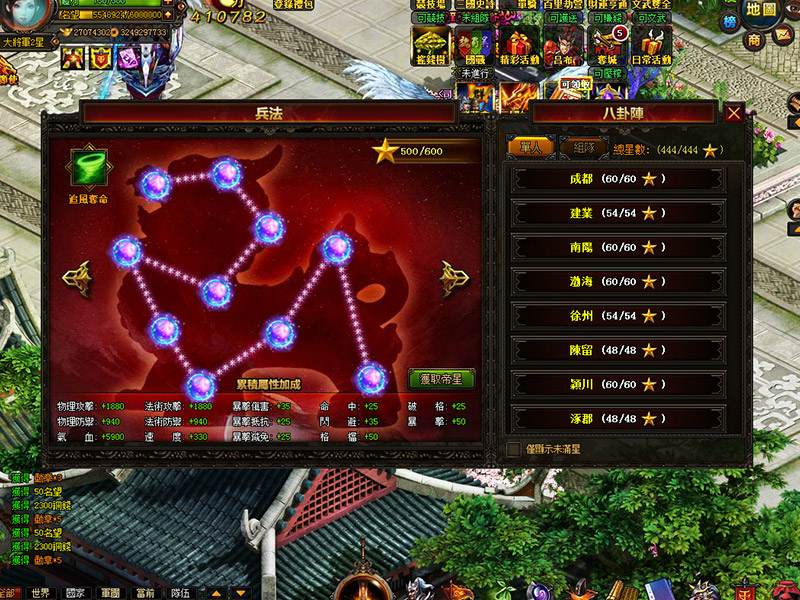 貼心提醒:玩家可以通過八卦陣獲取星星來啟動這些兵書,從而獲得高額戰鬥力加成