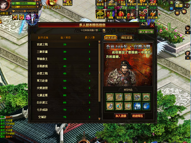跟著劇情開始解基礎副本,且遊戲系統將會逐步開啟不同的副本,三國歷史在這裡被展現。