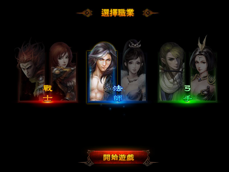 遊戲一開始提供了三種職業任君挑選:戰神(戰士)、天命(法師)、獵魂(弓手)。「戰士」作為近戰職業,力士出眾的打擊能力,能有效阻止敵人攻擊後方友軍,是團隊的堅強屏障,若要衝鋒陷陣抵制敵人,那他就是最好的選擇。「弓手」箭無虛發,強大的遠程傷害,使得敵人猝不及防,讓對手防不慎防,擅長使用範圍性傷害。「法師」善於利用世間萬物;談笑間,呼風喚雨,飛沙走石力退敵方雄兵百萬,天生的殺手,團隊中不可或缺的一員。