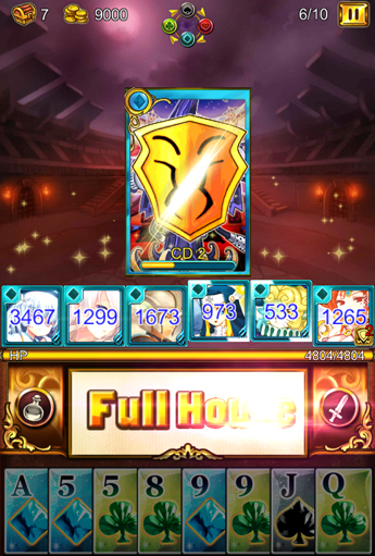 傷害、恢復特大幅度上升,額外攻擊二個目標,且無視30%防禦力,所有卡片都會進行攻擊,下次補牌額外多補一張鬼牌