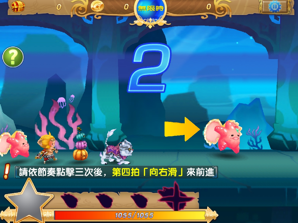 當玩家進入遊戲關卡後,可依照畫面指示和音樂節奏,點或劃螢幕 4 次即可輸入1個指令,依據第 4 次指令操作的不同,就可以下達不同指令操控隊伍進行不同動作。