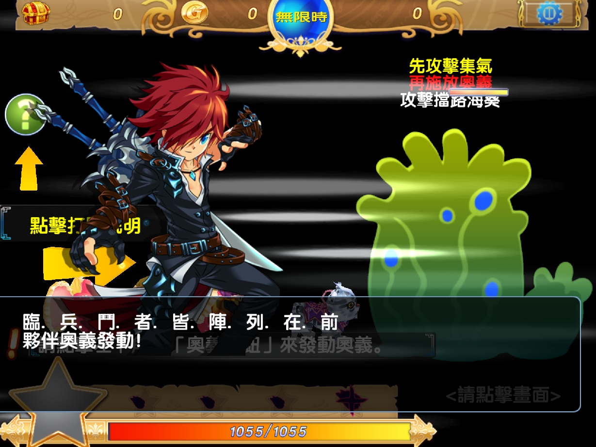 當連續完成輸入 5 次指令會進入「狂熱模式」,在狂熱模式下隊伍攻擊力較高,而累積輸入5次「原地攻擊」指令,可點選右下角「奧義按鈕」來驅動「驅魔奧義」。