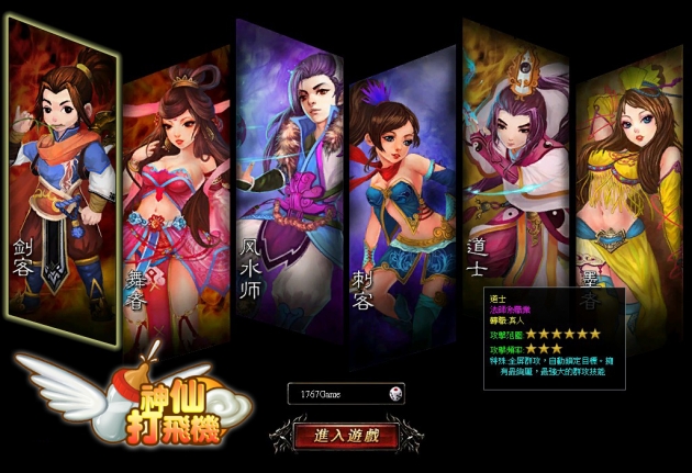 遊戲一開始提供了六種職業任君挑選,各職業角色的戰力及特殊攻擊方式將成為影響遊戲中對戰操作方式的重大因素,怕手拙的玩家可以選擇上、下、左、右同時發飛劍的舞者,作為初始職業,後期還可轉職為舞仙。