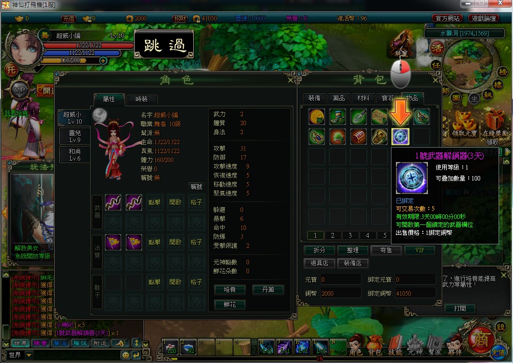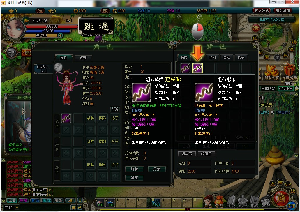 武器、法寶、鞋子最多可開啟5格,其餘則需達成轉職條件