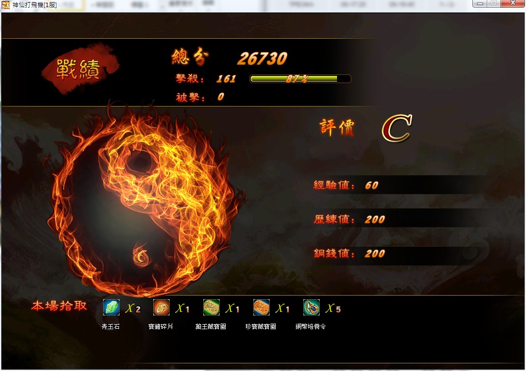 當關卡副本結束後,除了獲得經驗、歷練、銅錢外,還有本場次固定獎勵道具與通關抽獎(銅幣、元寶)兩種方式,隨時關卡等級不同得到的獎勵豐富度也會有所提升。