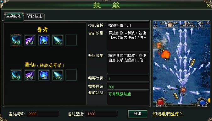 乾坤真氣 Lv1:釋放衝擊波,並使自身攻擊力提高 1.4 倍。